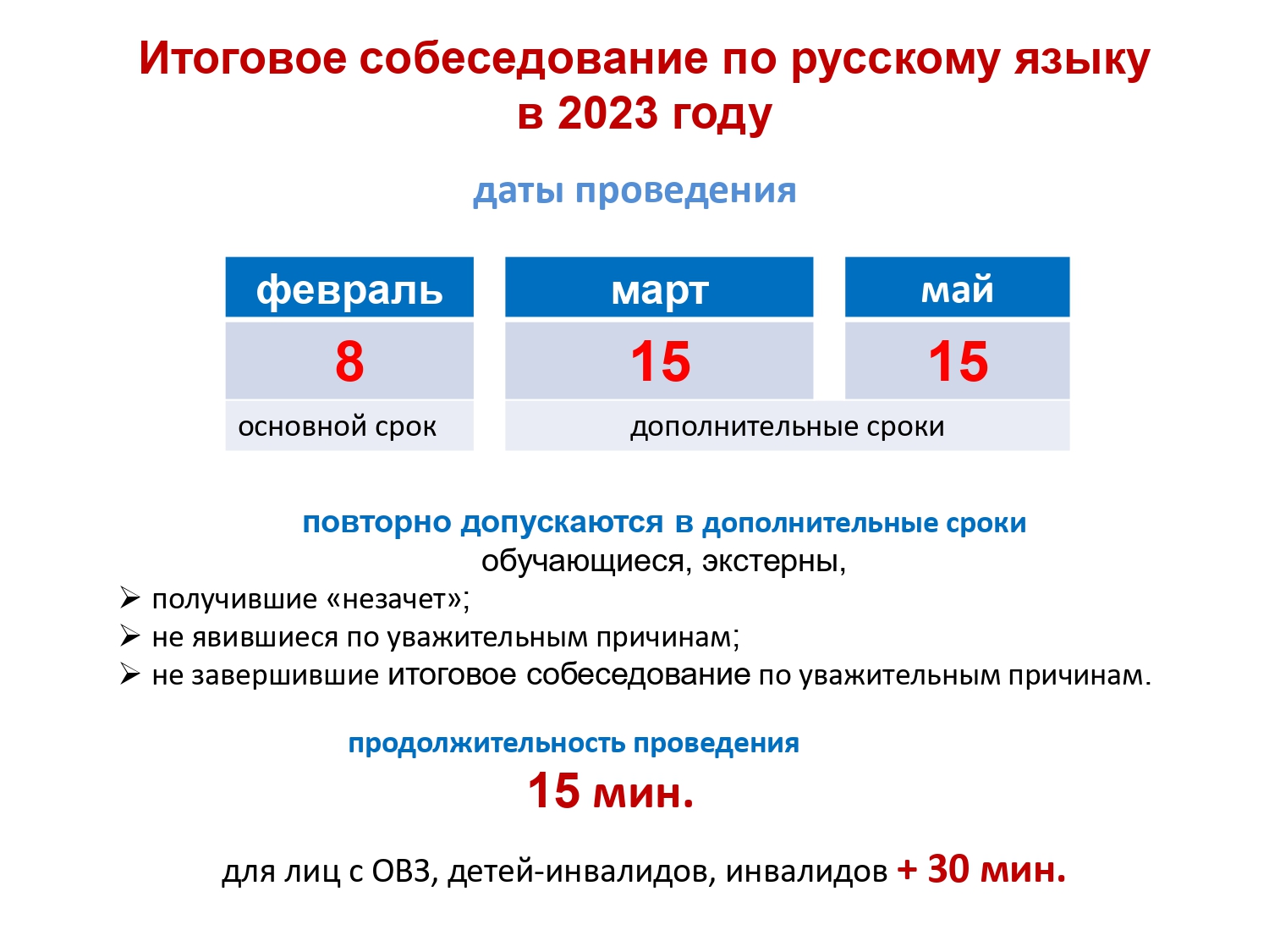 Обучающиеся, получившие неудовлетворительный результат «незачет», не явившиеся на итоговое собеседование или не завершившие его по уважительным причинам смогут пройти собеседование в дополнительные сроки