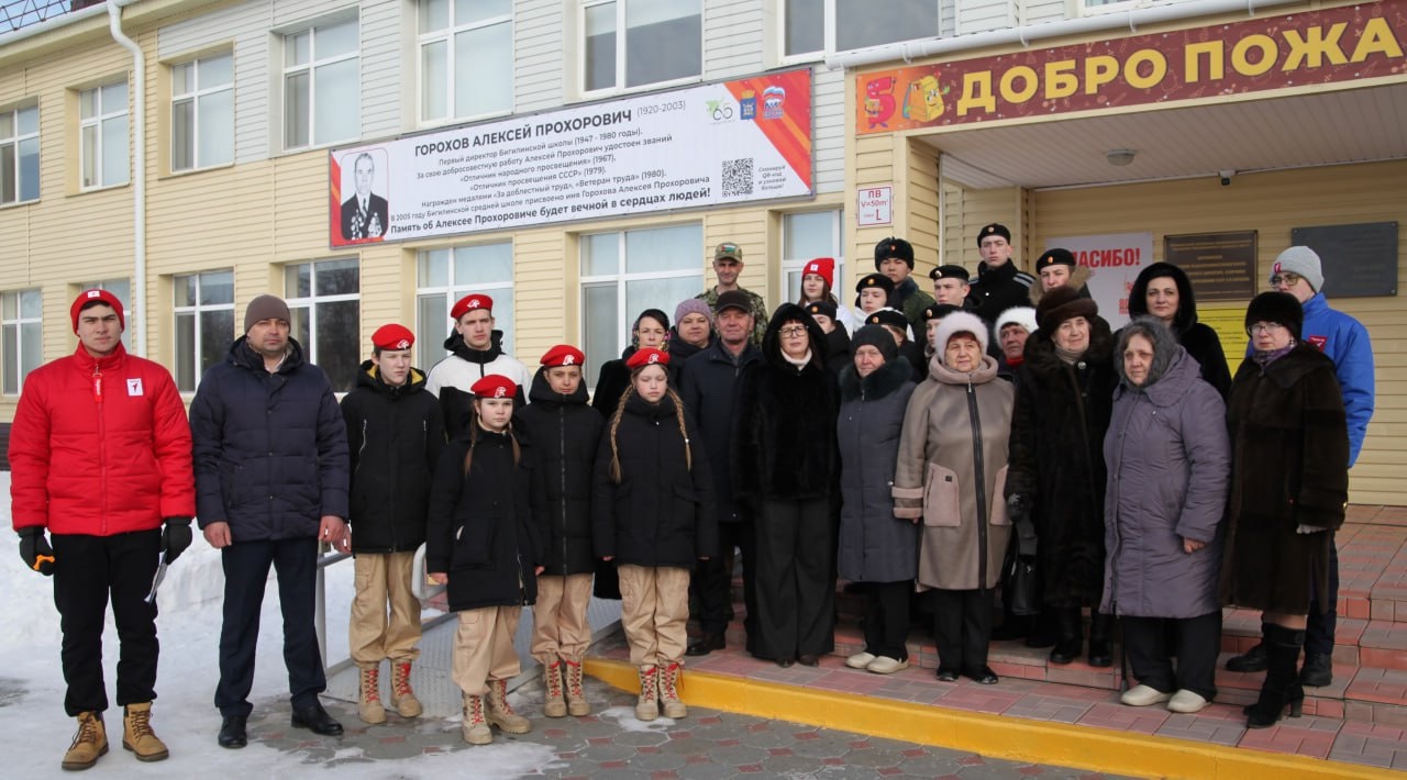 Портрет Алексея Прохоровича Горохова — отличника народного просвещения, участника Великой Отечественной войны размещён на фасаде родной школы.